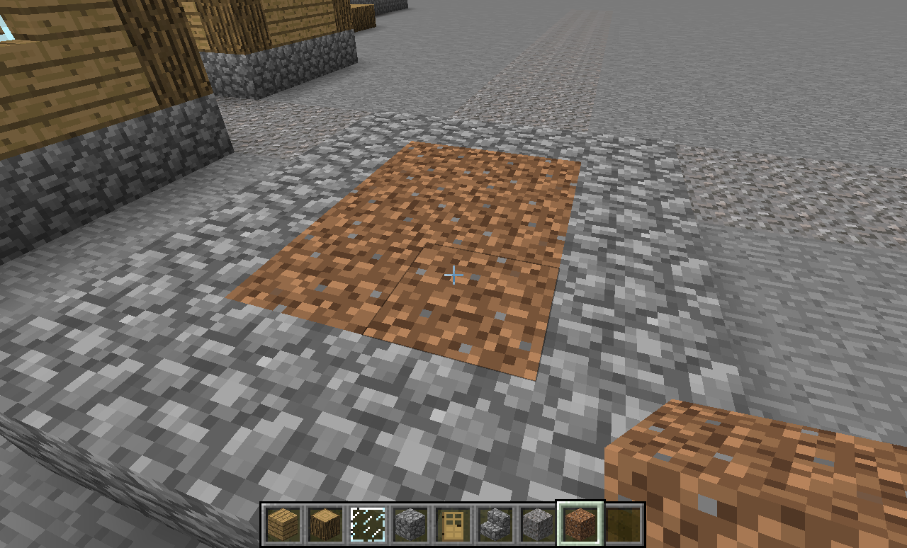 First Row: you’ll need a 4×5 or 5×4 cobblestone border and dirt in the inside