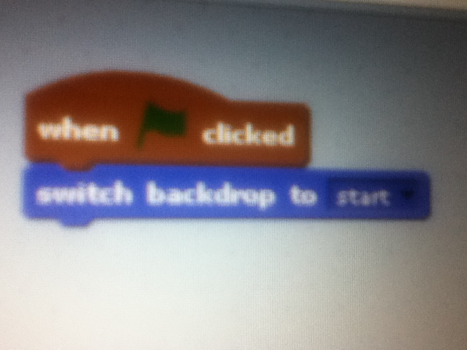 6. Now Who said this was an art class? We are now about to start coding! First in the Stage, add a “when start clicked” block and a “switch costume” block after. Set the costume to menu.