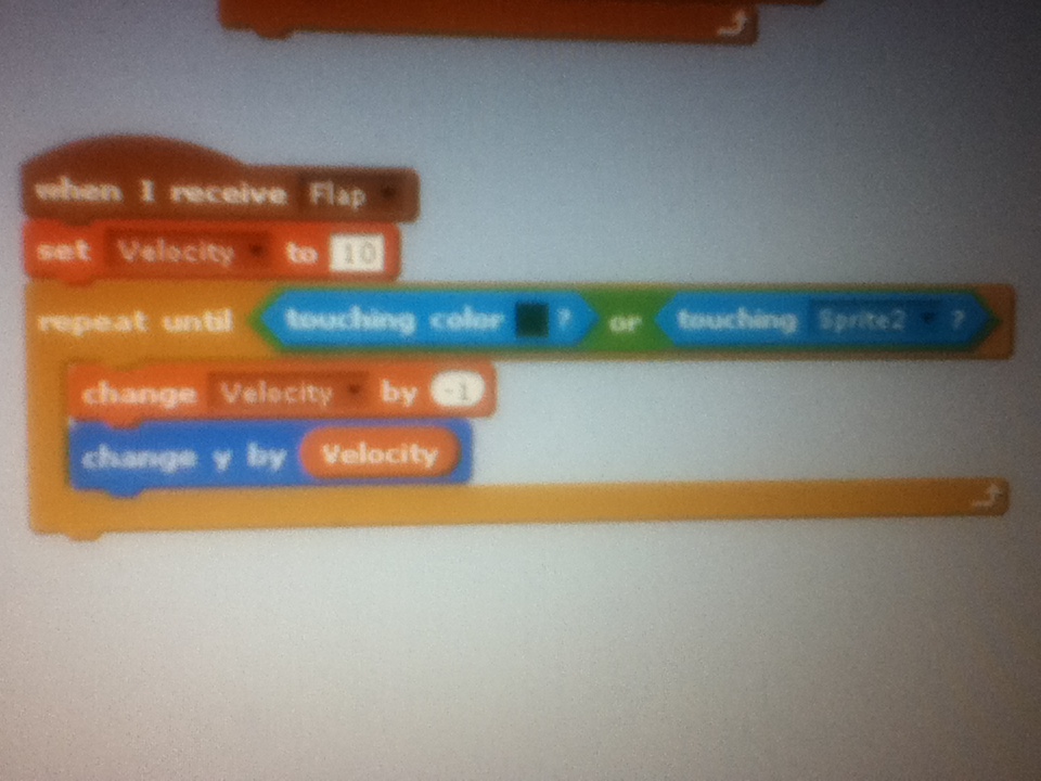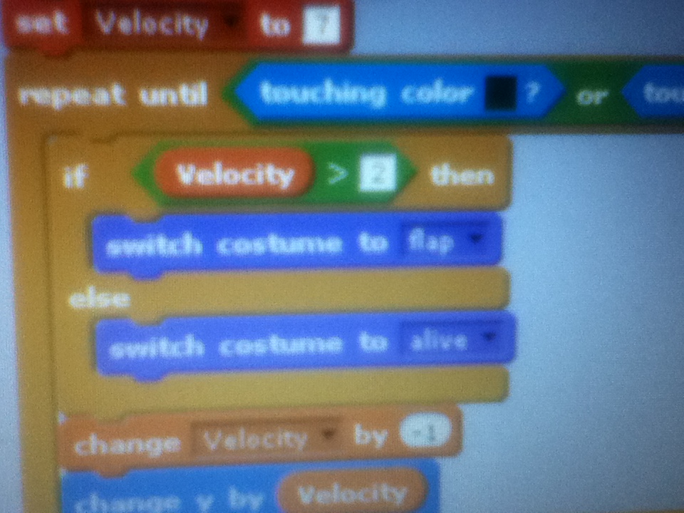 17. Now to make it look like its flapping add this code before the “change velocity by -1”.