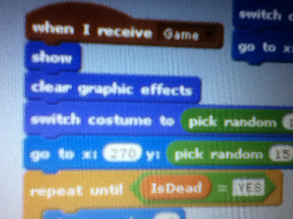 20. OMG its step 20!!!! Add a “clear graphic effects” block after the “show” in the “when i receive” block.