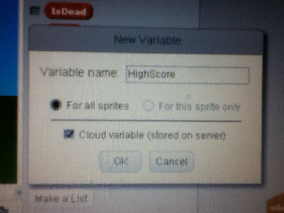 23. Now make a new variable called highscore and set it as a cloud variable.