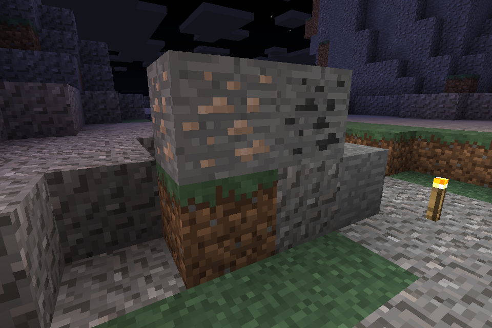 The picture below shows the blocks you will find in this Biome not counting the torch